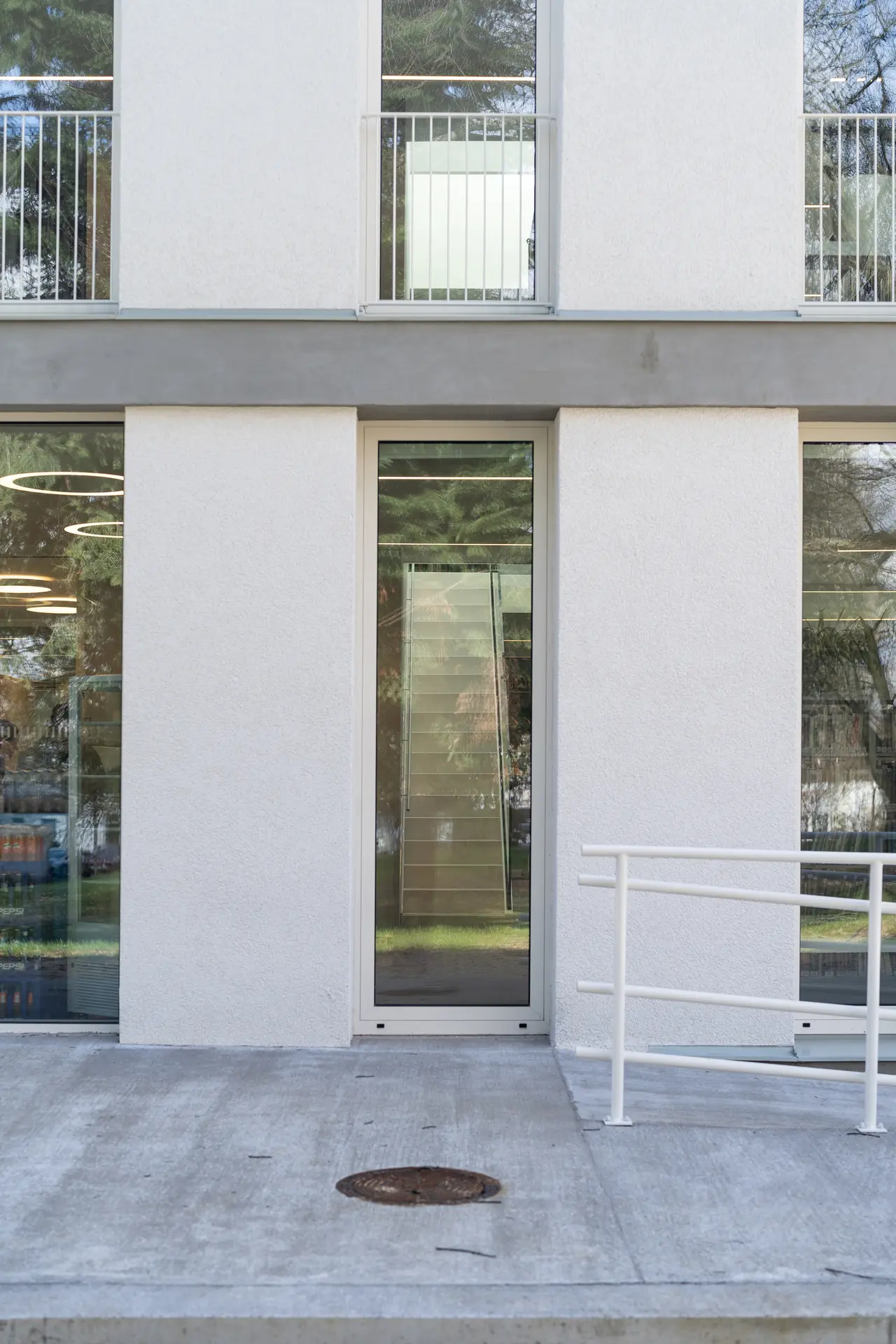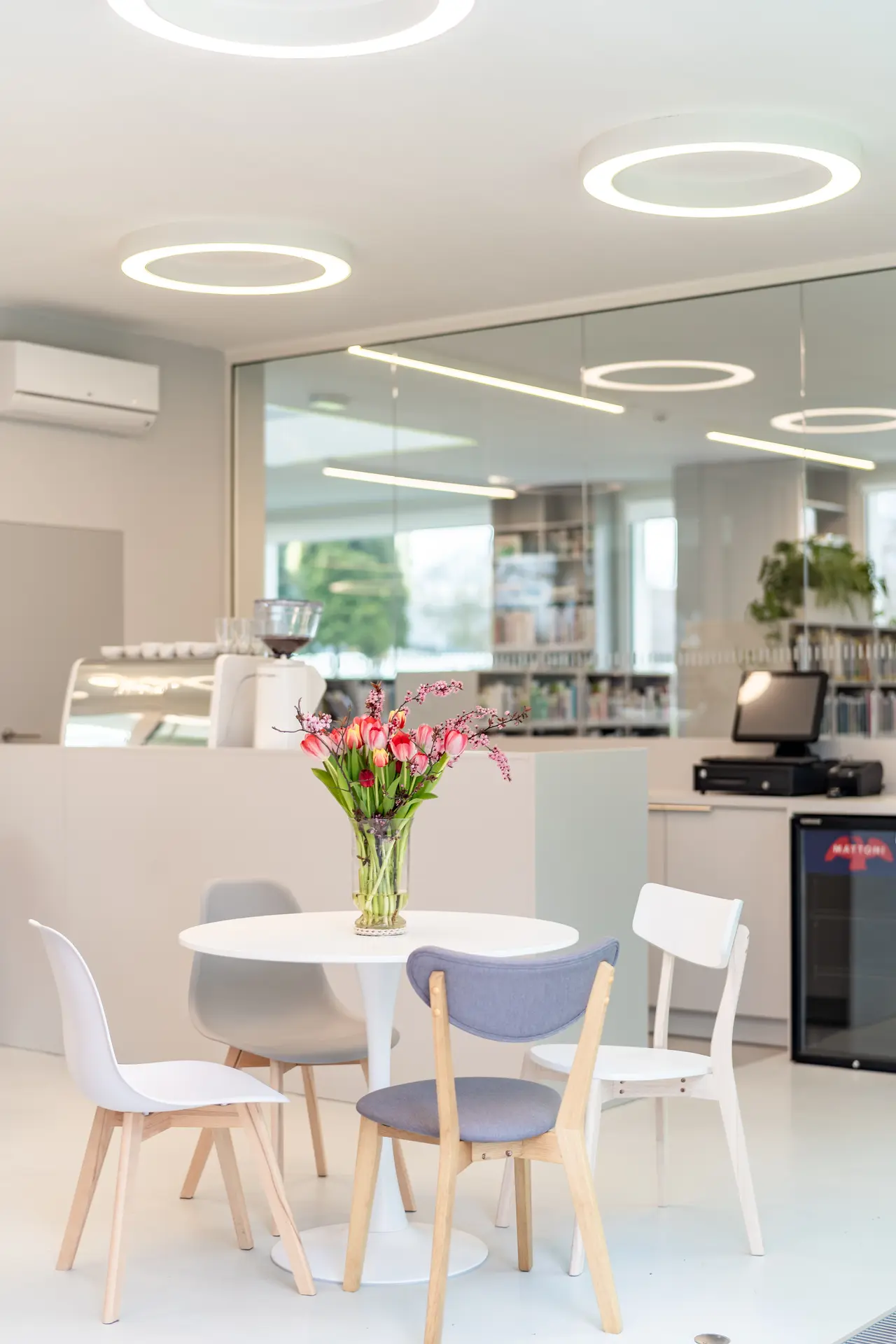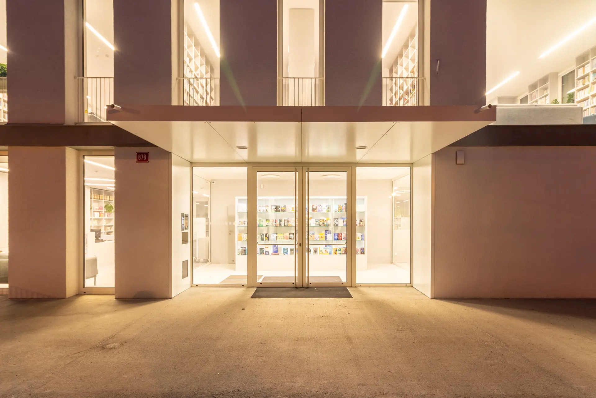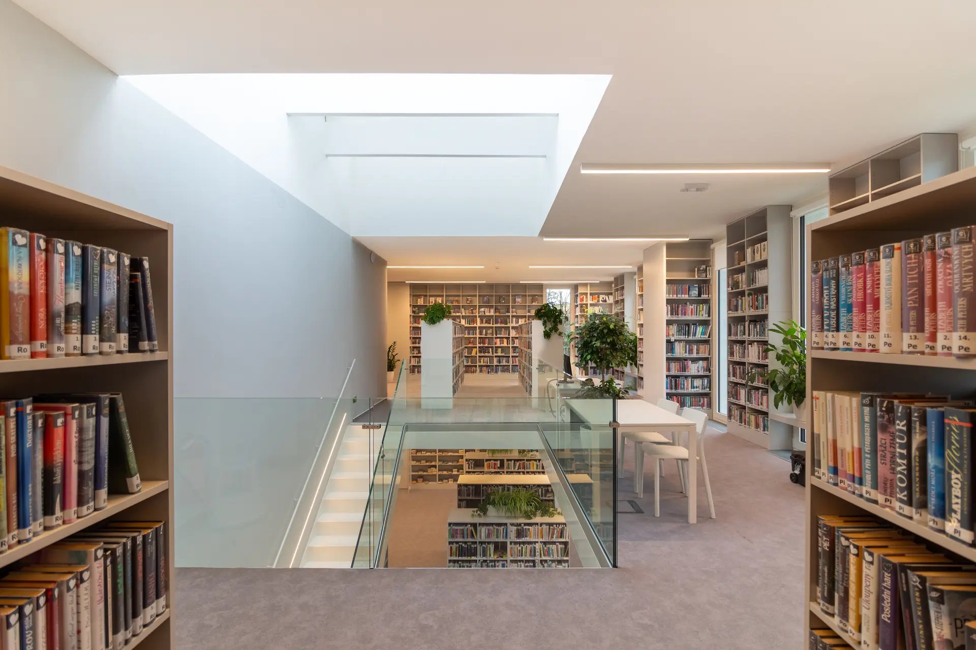 - knihovna vzdušná a prosvětlená – nutné zázemí je situováno doprostřed dispozice, což umožňuje přirozené provětrání a prosvětlení objektu
