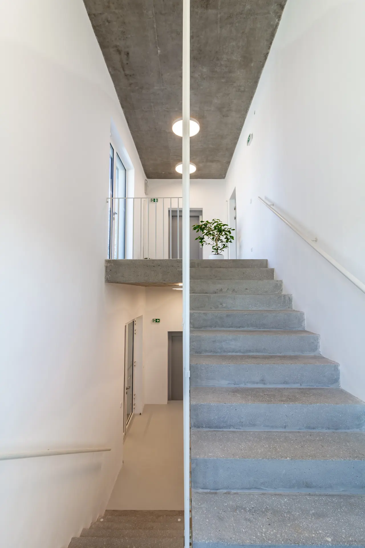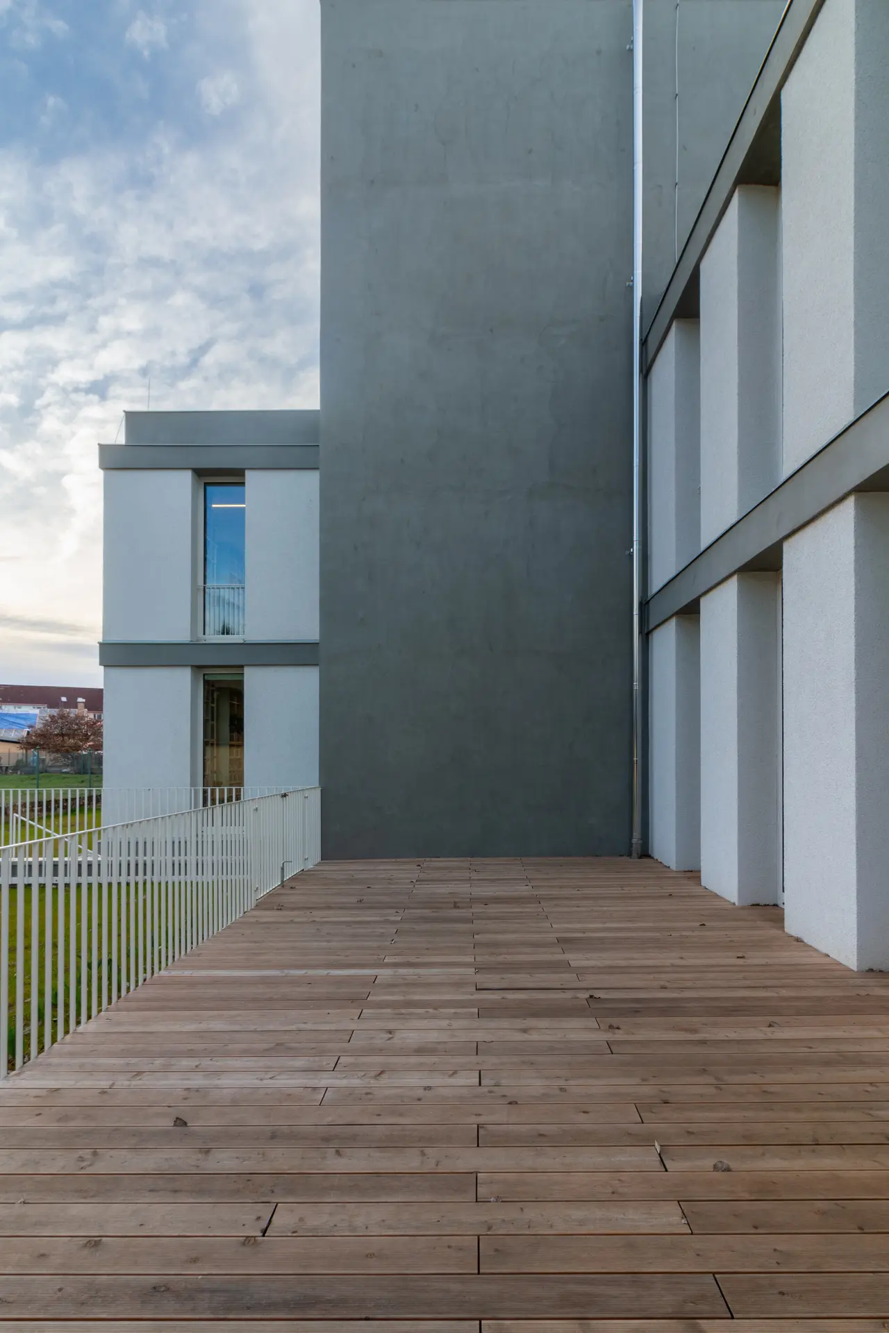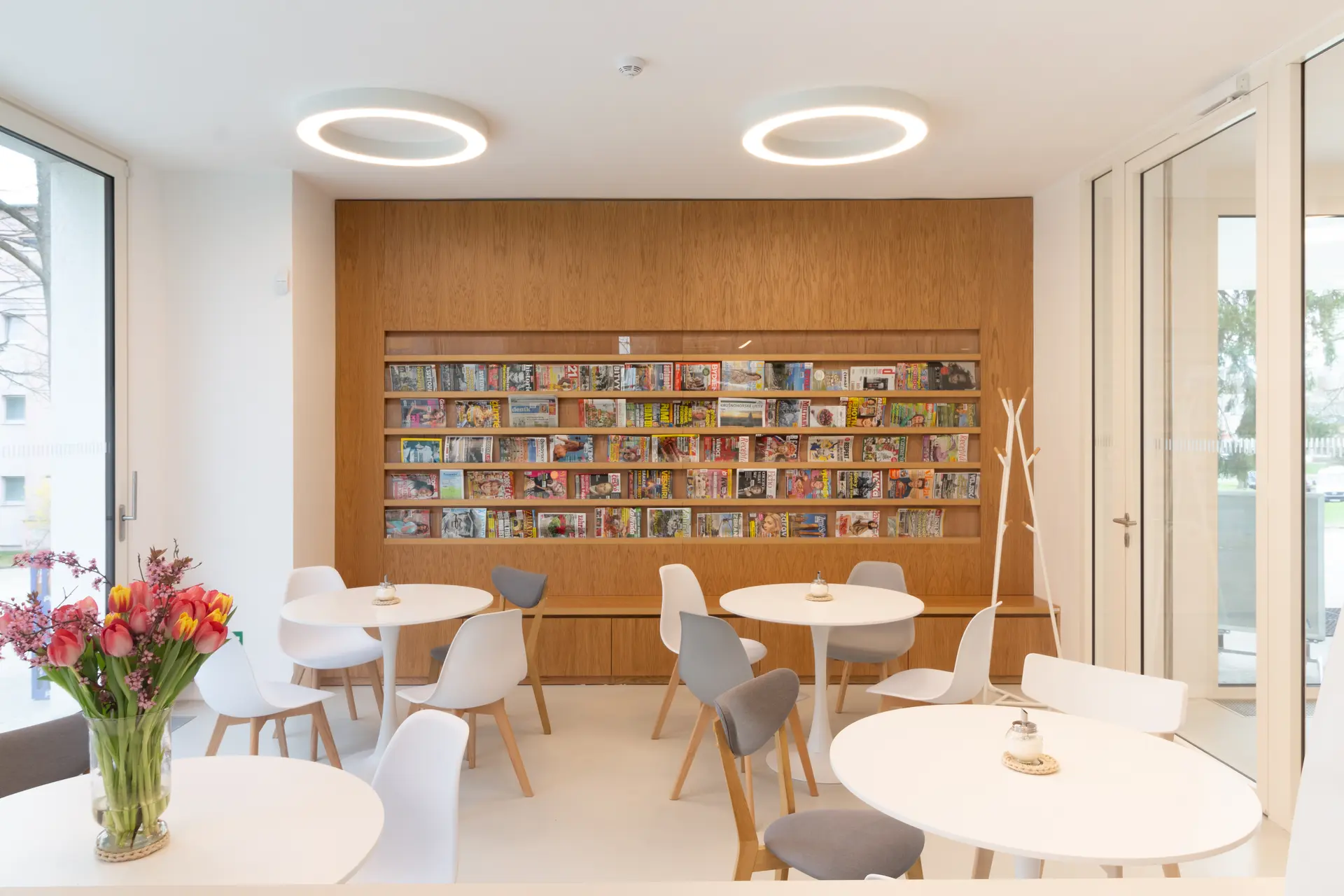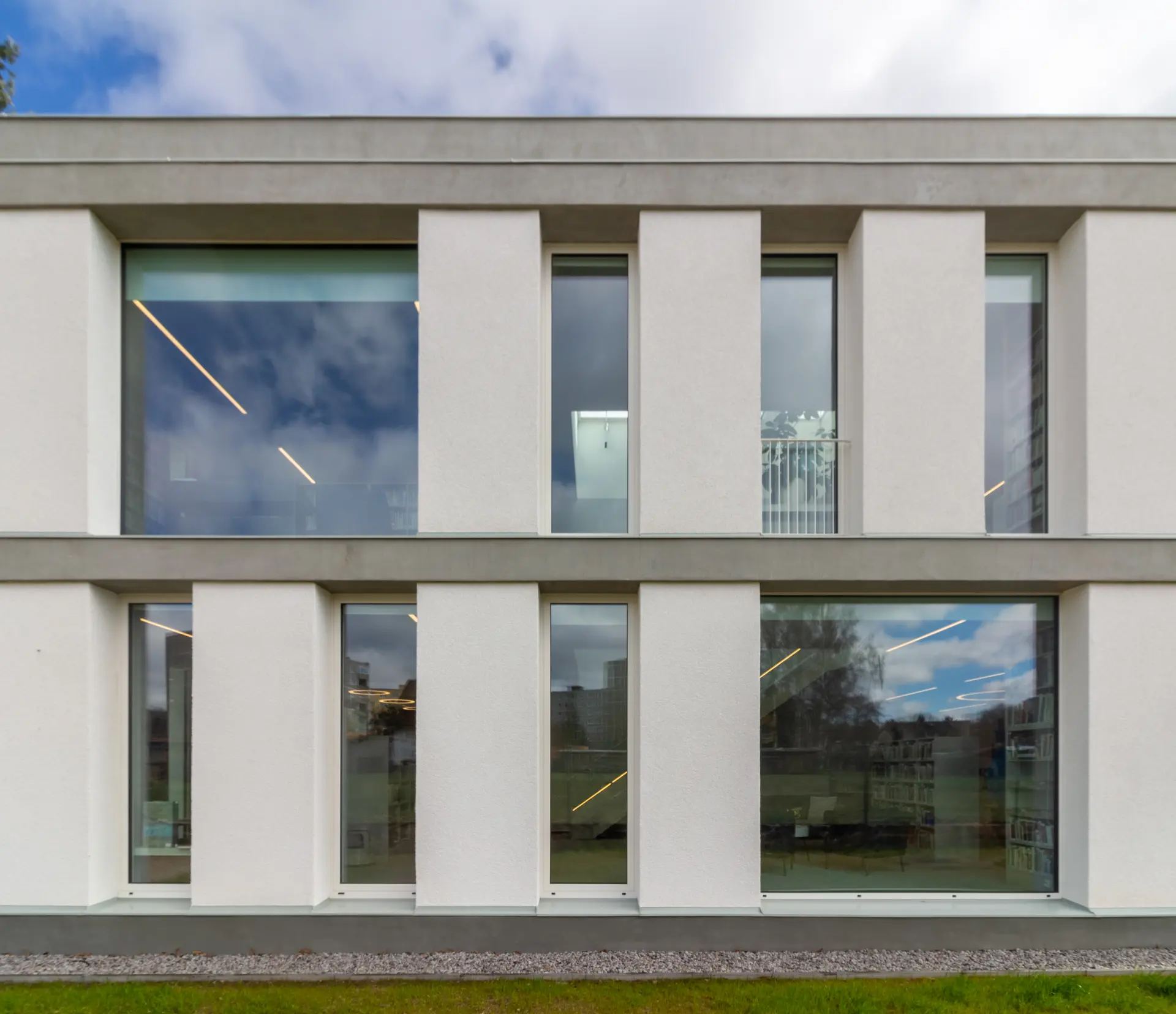 - knihovna vzdušná a prosvětlená – nutné zázemí je situováno doprostřed dispozice, což umožňuje přirozené provětrání a prosvětlení objektu