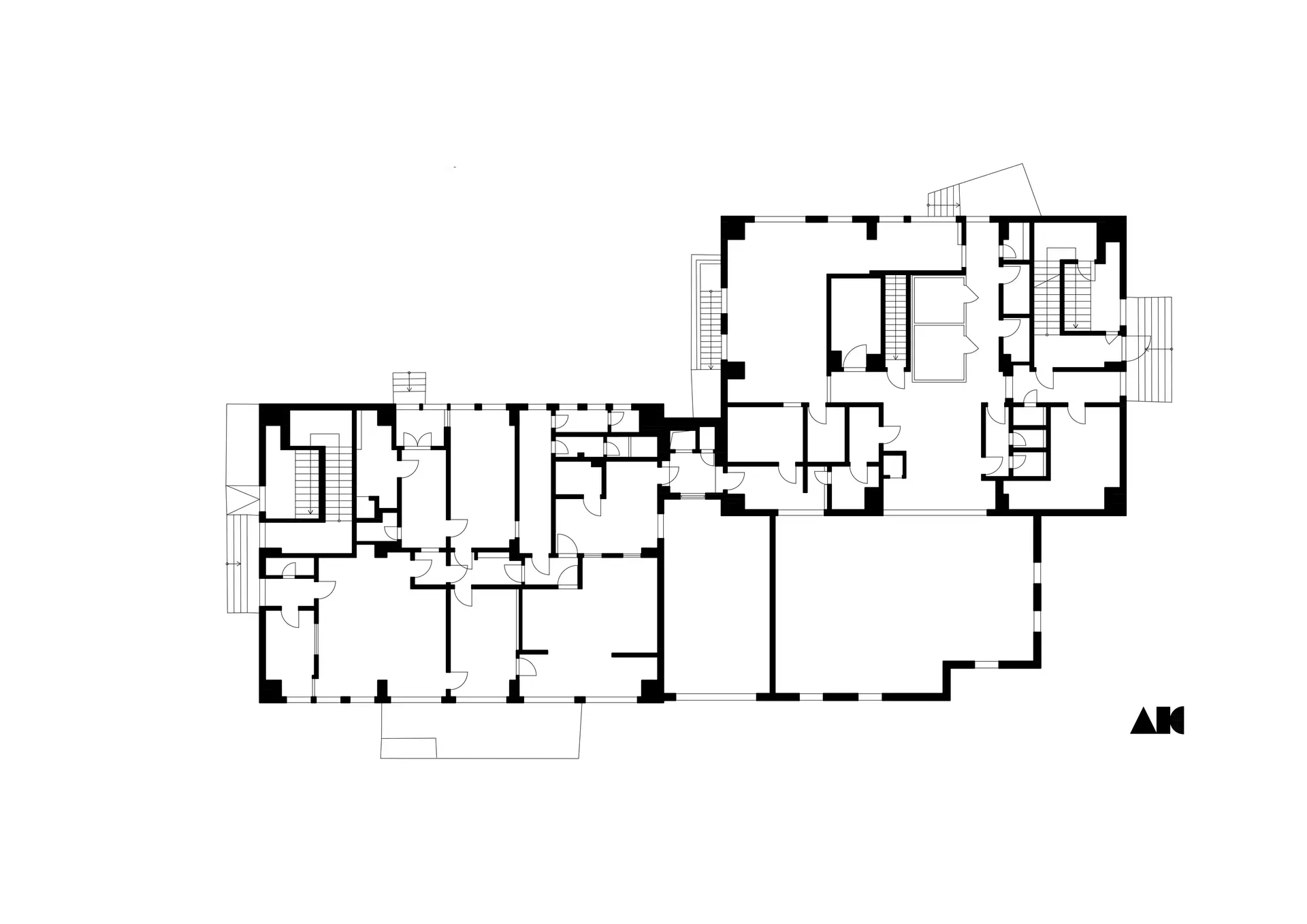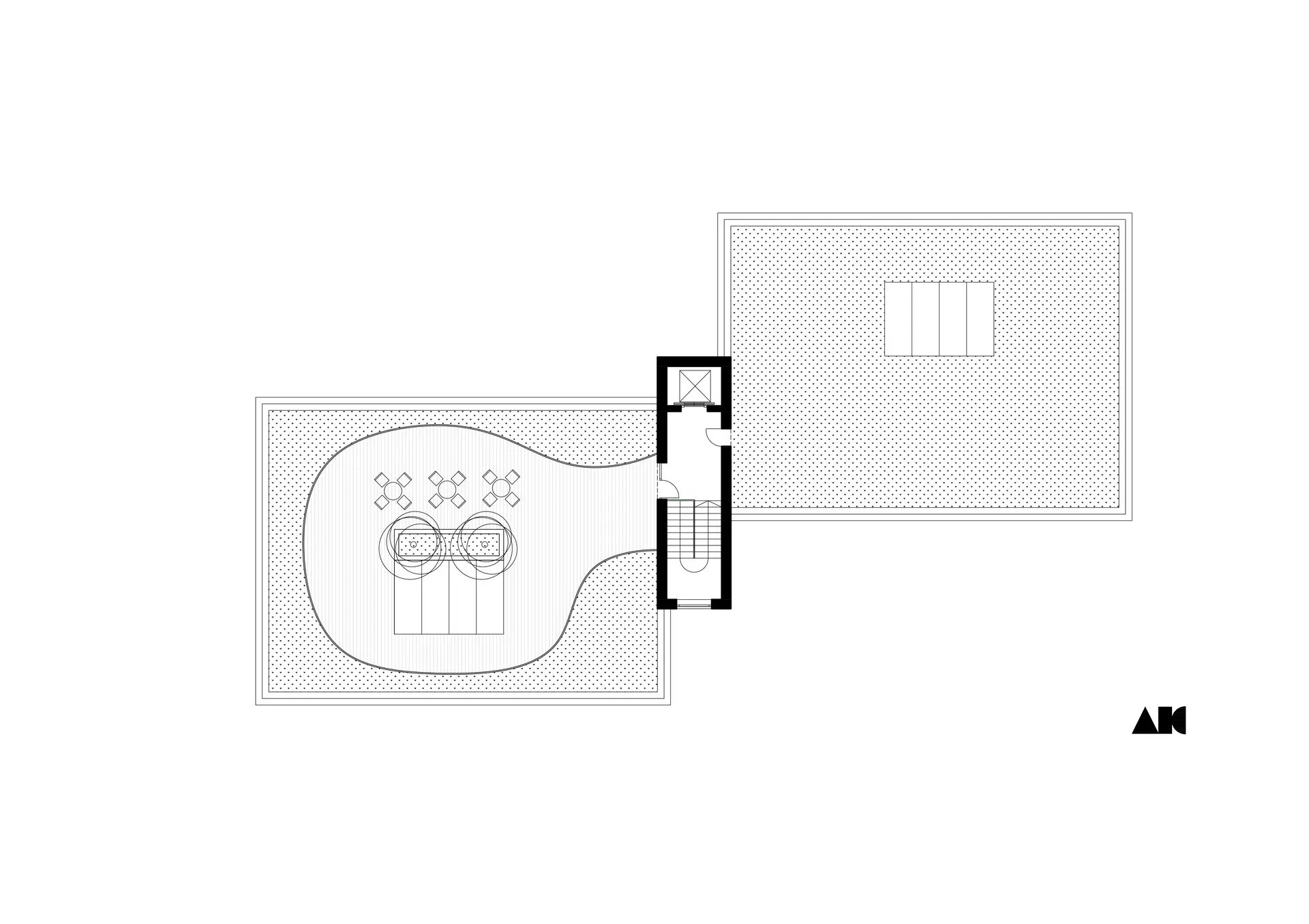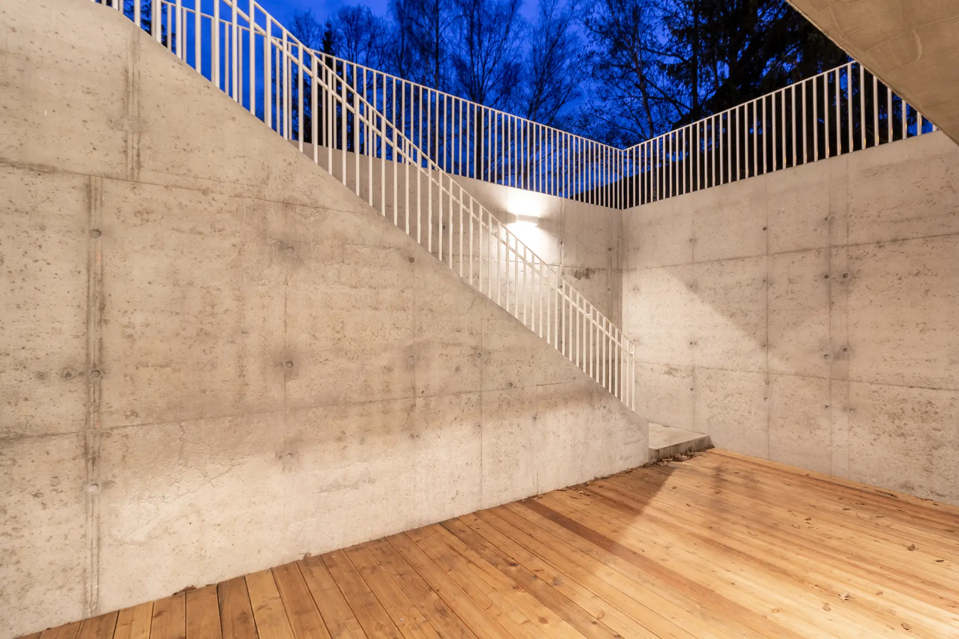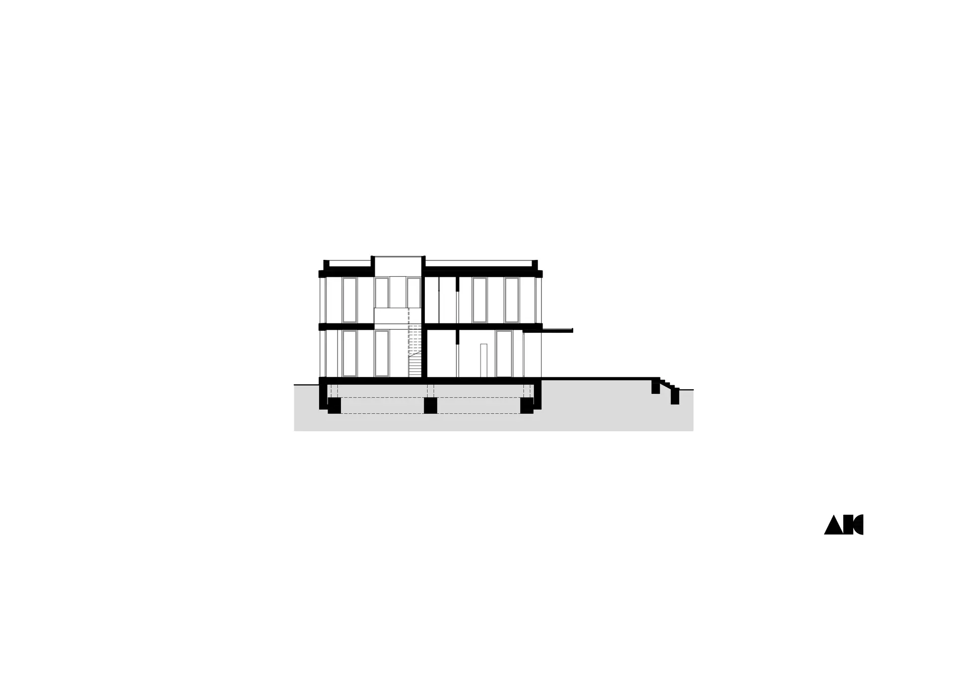 - knihovna vzdušná a prosvětlená – nutné zázemí je situováno doprostřed dispozice, což umožňuje přirozené provětrání a prosvětlení objektu