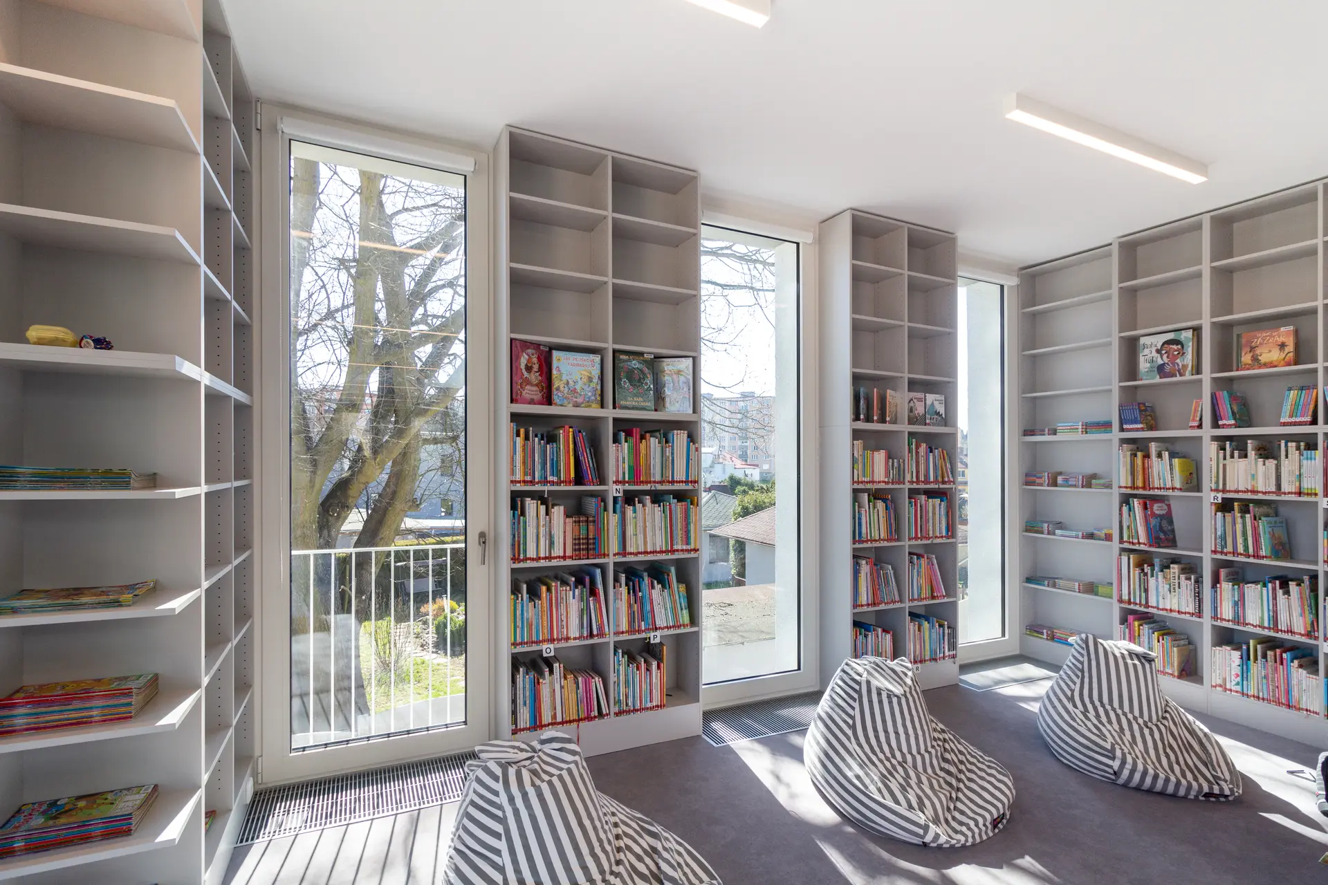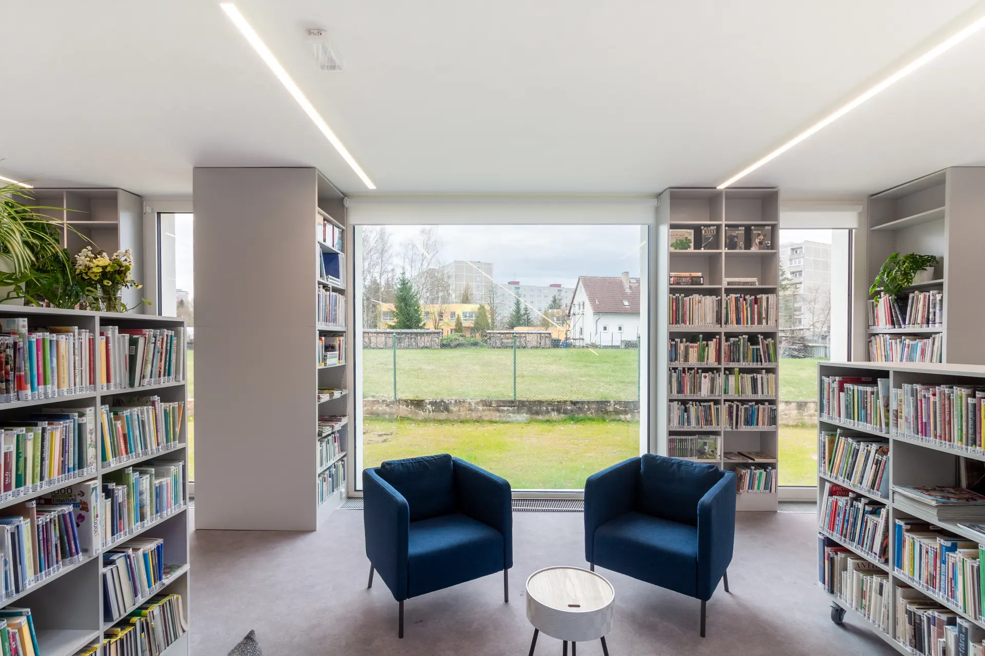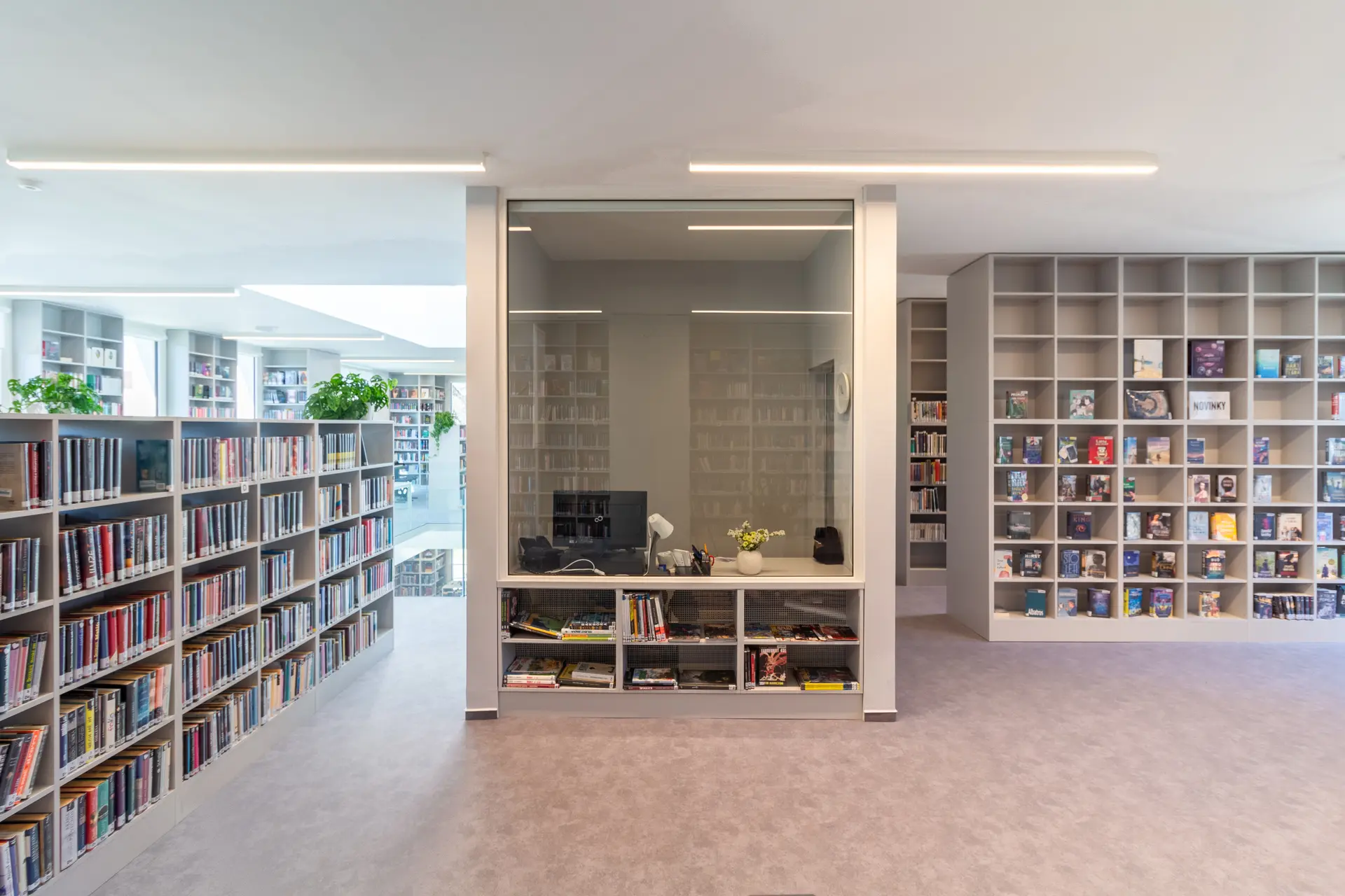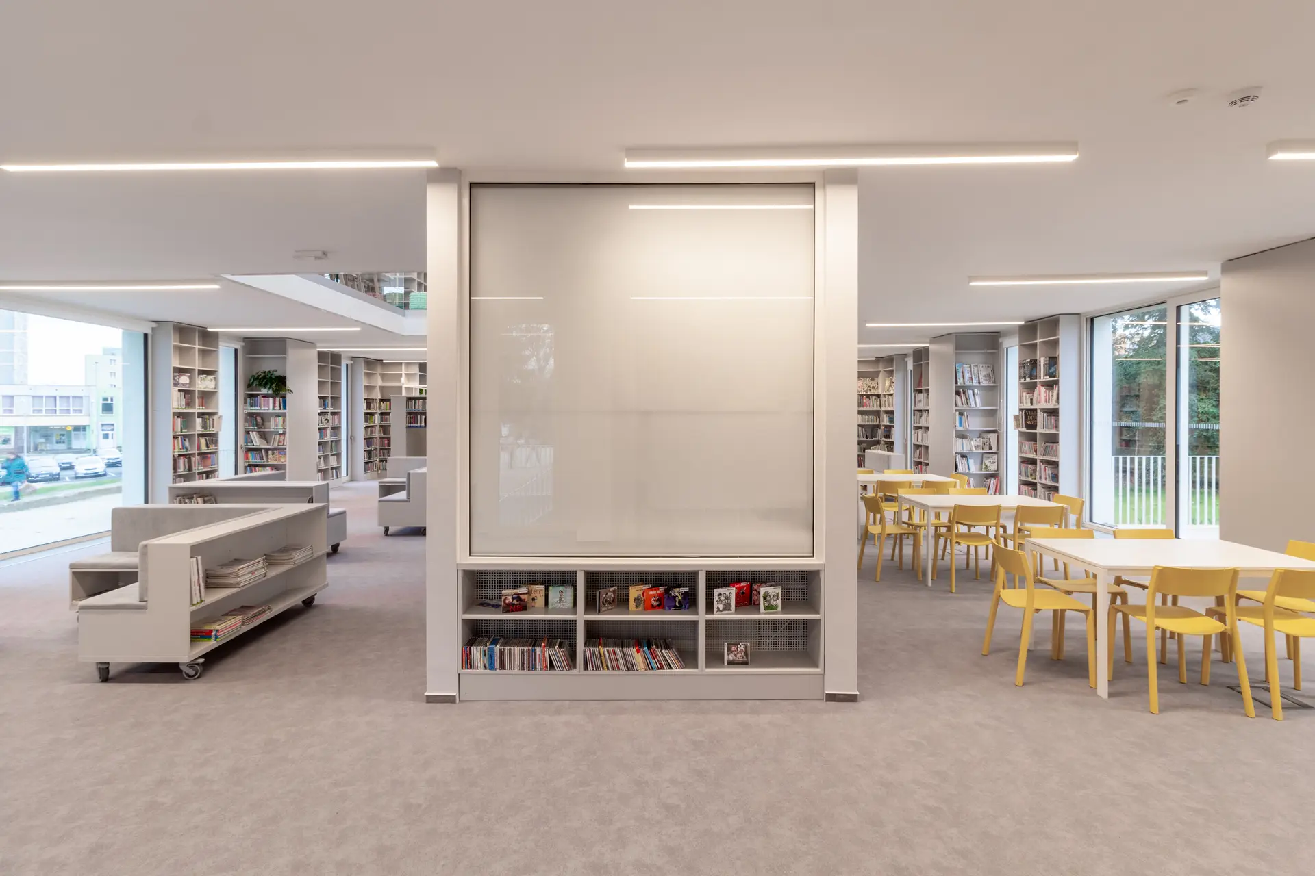 - knihovna variabilní – mobilním nábytkem lze v rámci volného výběru vytvořit prostory pro různý počet návštěvníků – od společného pletení svetrů po autorské čtení